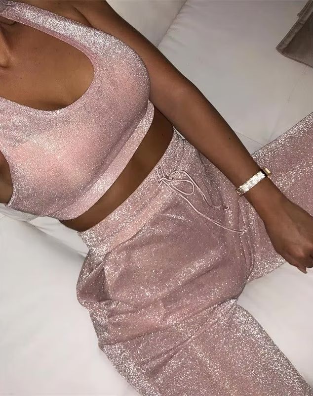 This glamorous Pink Glittery Set from Amour Chill is the perfect way to add a touch of sparkle to your collection. The soft pink color of the glitter will bring a subtle sophistication to your look. Perfect for all occasions.