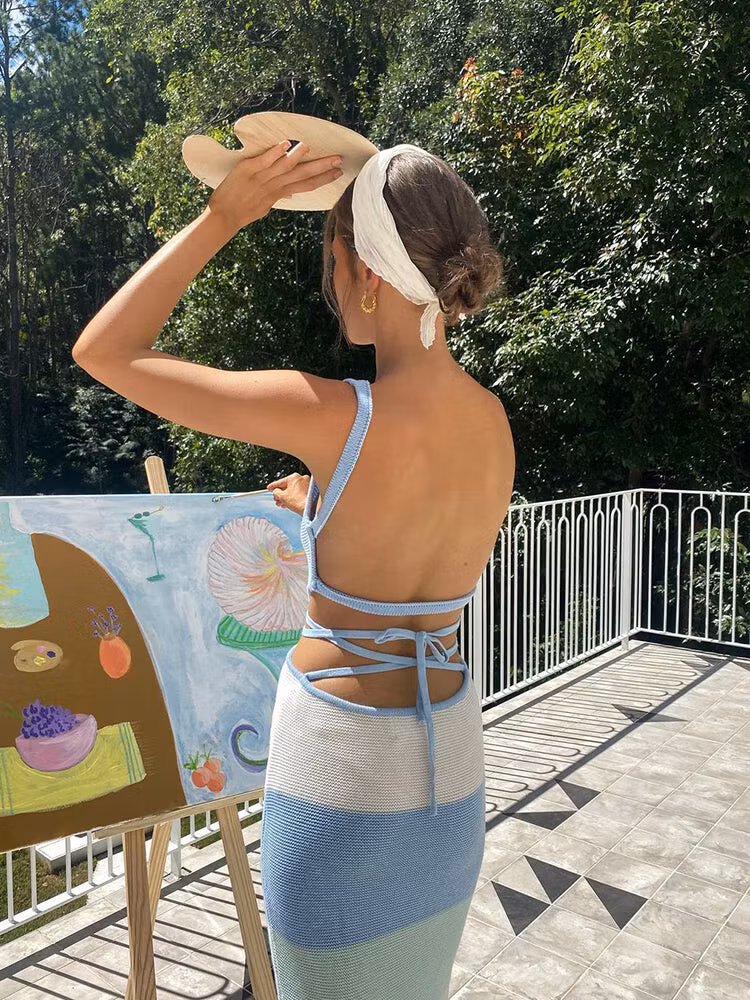 Randig färgglad mönstrad klänning med djup rygg.Märke: Nova of Sweden