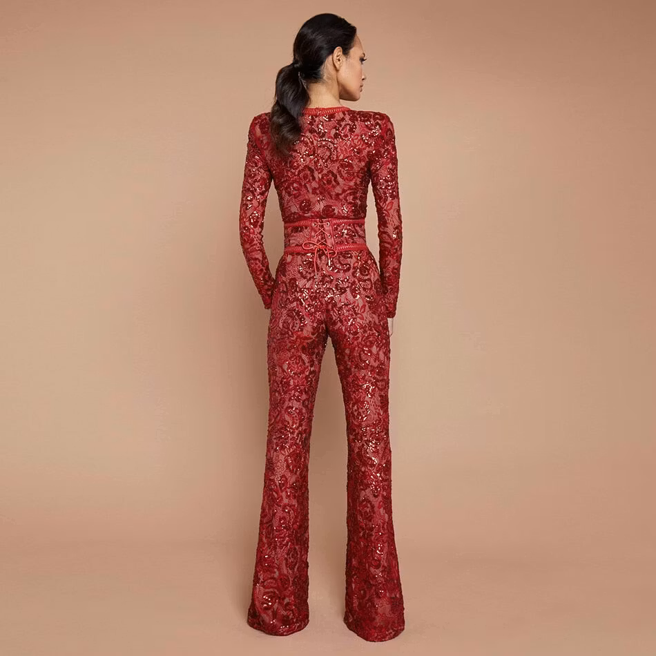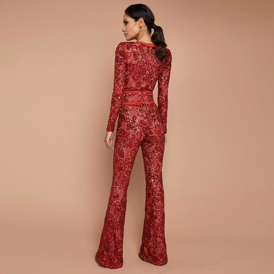Glamorous jumpsuit with waist belt and pattern in glitter.